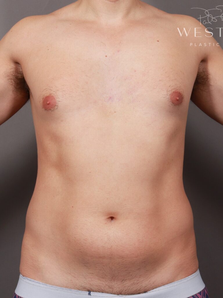 Description: Dr. Paul Ruff performed Vaser Liposuction and Renuvion of the abdomen and flanks. The patient is in his early 40s and 1 year post-op.